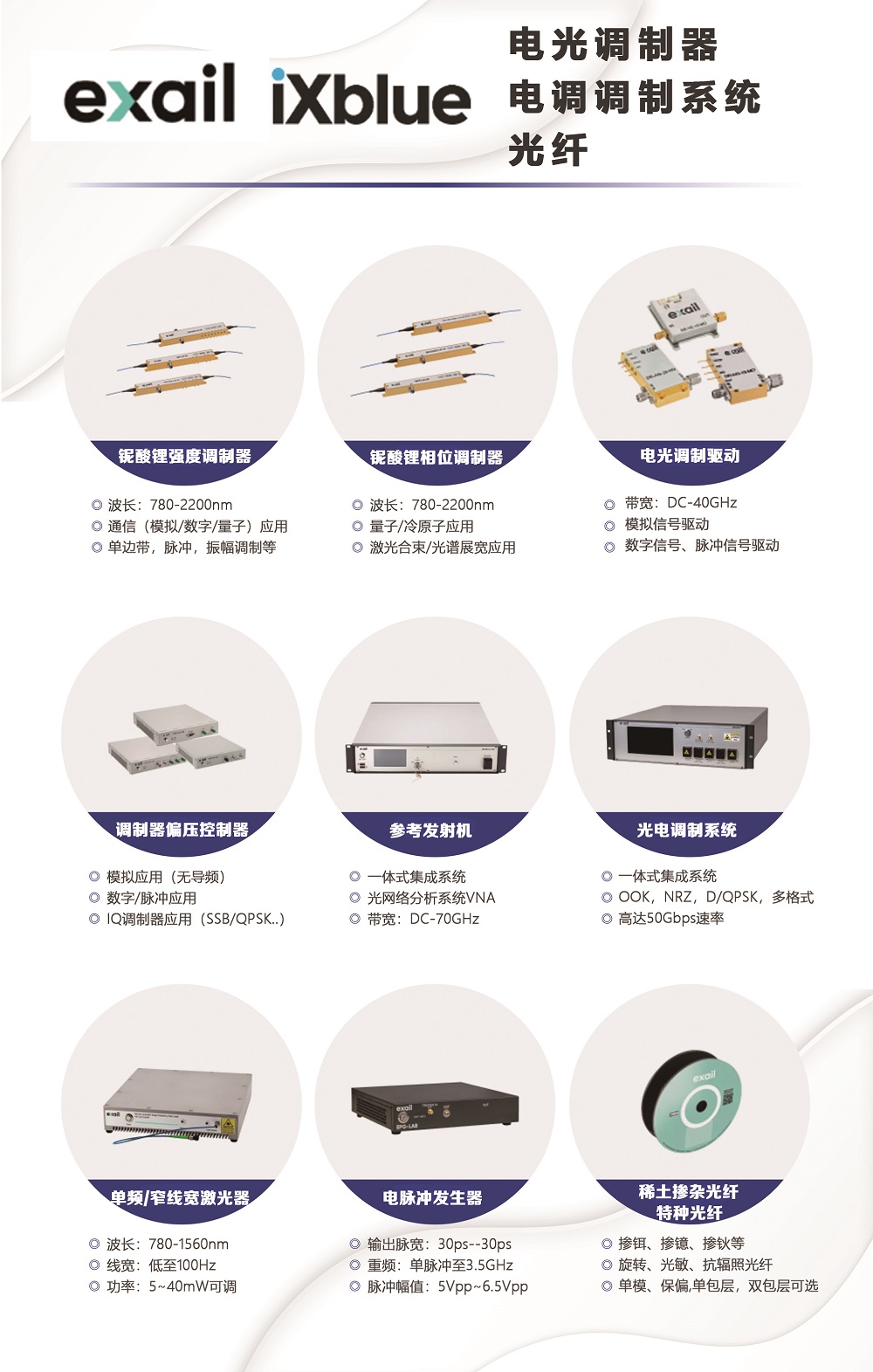 (6)exail/iXblue:電光調(diào)制器,光發(fā)射機(jī),特種光纖
