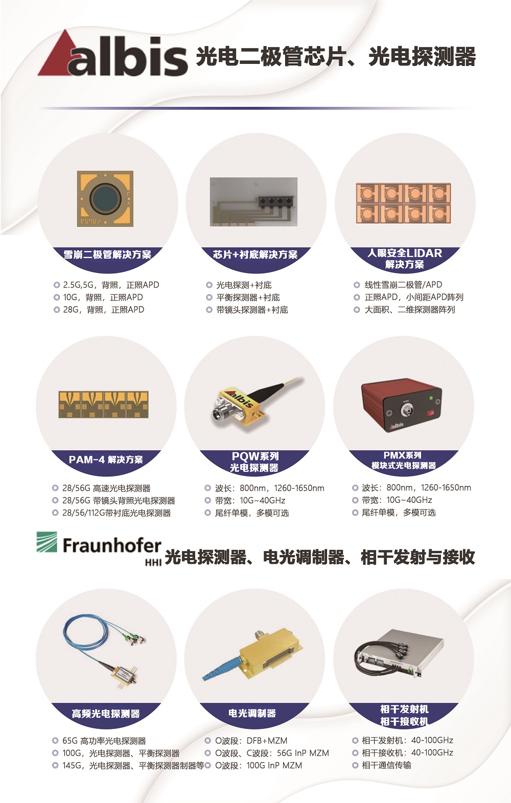 (8)Albis:光電探測器芯片 & Fraunhofer HHI 100GHz+光電探測器,電光調(diào)制器