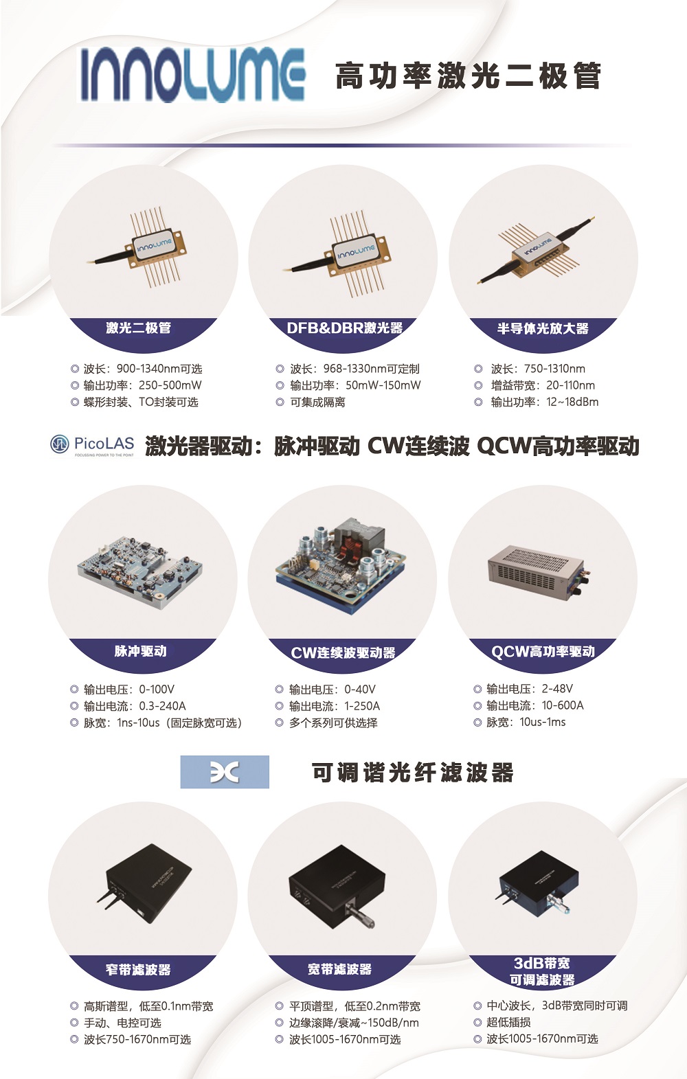(9)Innolume 激光器二極管,半導(dǎo)體光放大器 & WLPhotonics 可調(diào)諧光纖濾波器