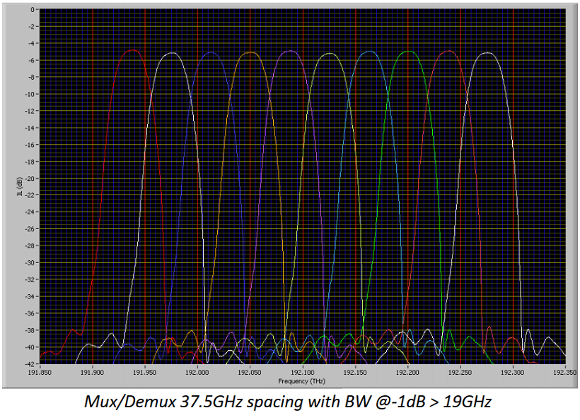 由于我們技術(shù)的多功能性,我們能夠提供最完整的DWDM Mux/Demux范圍,間隔從6.25GHz到400GHz。
