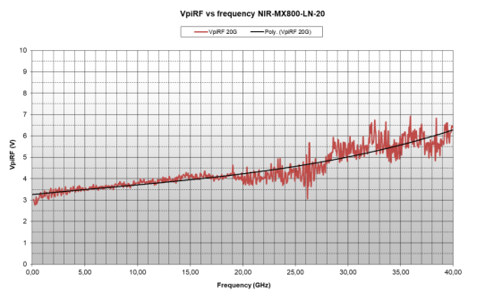 調(diào)制器半波電壓Vπvs頻率范圍@850 nm |